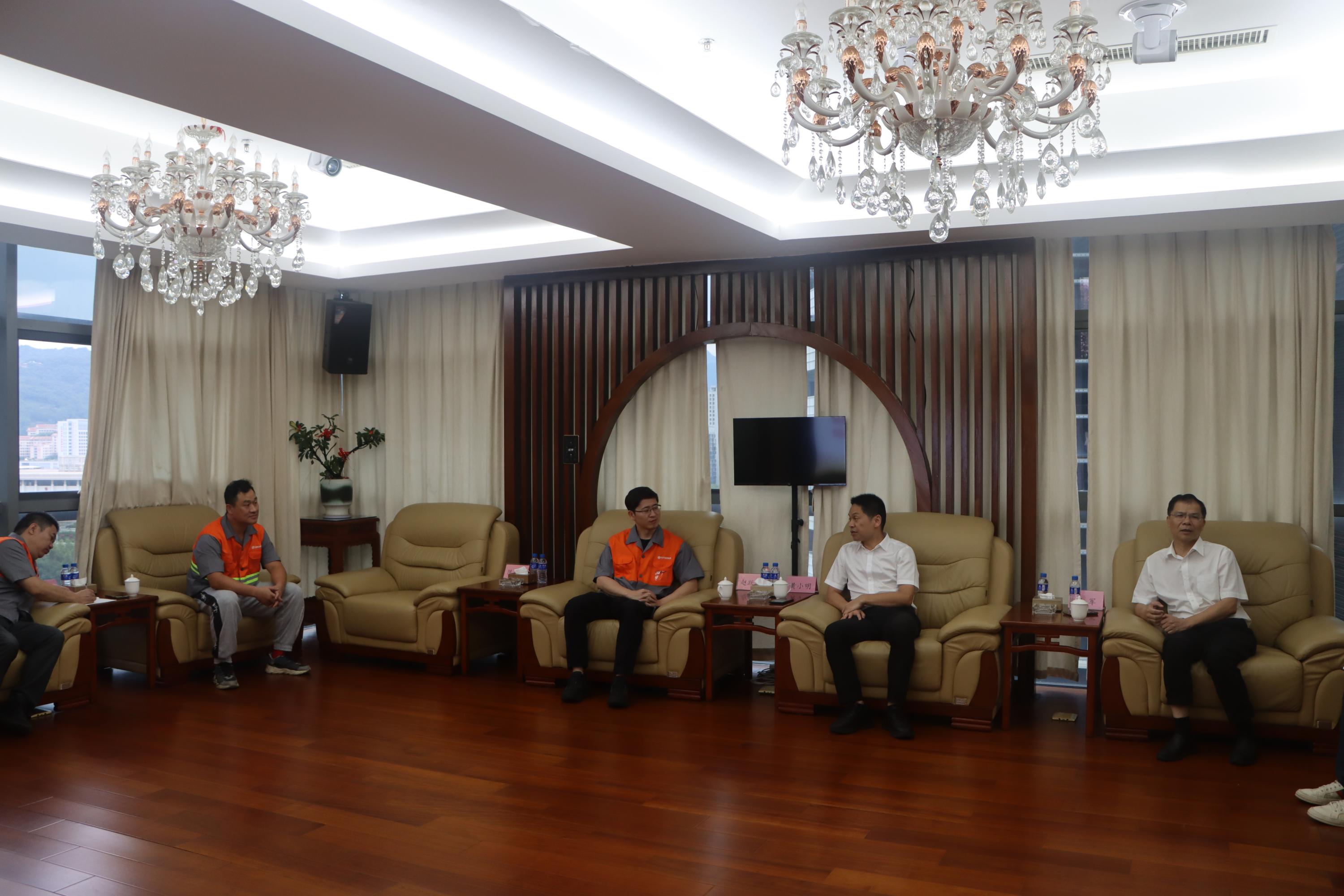 11月15日下午,上杭縣副縣長(zhǎng)黃小明帶隊(duì)蒞臨福建興萬(wàn)祥建設(shè)集團(tuán)有限公司進(jìn)行走訪調(diào)研。此次陪同調(diào)研的還有縣住建局黨組成員、副局長(zhǎng)張軍,縣住建局建筑業(yè)股負(fù)責(zé)人劉鋒等領(lǐng)導(dǎo)。調(diào)研組一行受到集團(tuán)公司副總裁趙躍輝的熱情接待。
