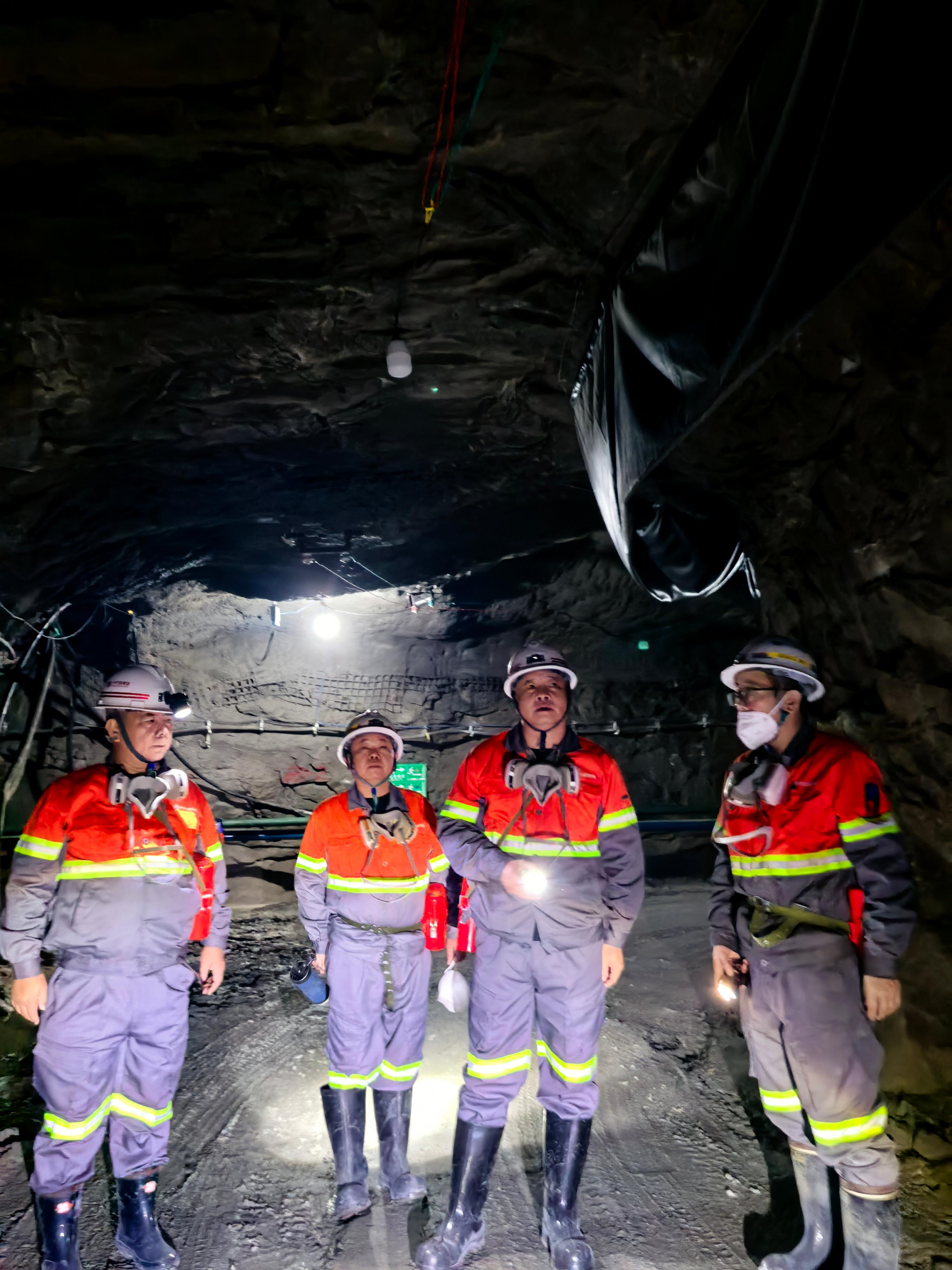 2024年10月19日,總裁助理兼生產(chǎn)技術(shù)部經(jīng)理邱元文、綜合管理部主任王東躍一行人到新疆金寶井巷項(xiàng)目部井下一線實(shí)地檢查指導(dǎo),項(xiàng)目部負(fù)責(zé)人林煥新等管理人員陪同檢查。